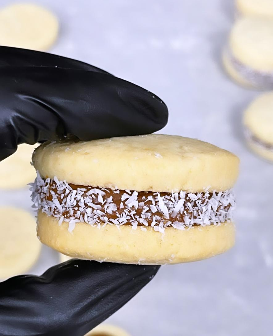 5- מעברים את ריבת חלב לשק זילוף. משדרים מחצית מהעוגיות, מזלפים במרכז ריבת חלב. סוגרים עם עוגייה נוספת ולוחצים קלות.